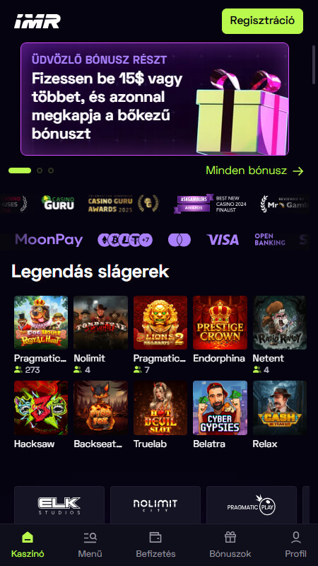 | 🏆 Díjak | Celebrating Greatness – Casino Guru Awards 2025, Best New Casino 2024 Finalist (AskGamblers Awards), Players Choice ’24, No.1 Casino Bonuses 2024 |