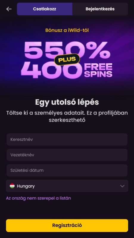A folyamatot bárki könnyedén végigviheti az iWild kaszinó regisztráció során. Még azok is, akik először próbálkoznak online kaszinóval. Az alábbi lépések világosan bemutatják, hogyan hozhatsz létre fiókot lépésről-lépésre. A mellékelt képernyőképek pedig segítenek eligazodni a teljes folyamat során: