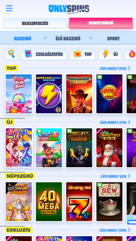 Az OnlySpins játék kínálata mennyiségében és változatosság terén is erős. Bármilyen hangulattal és tapasztalattal is ül le a játékos, biztosan talál valamit, ami megfogja.